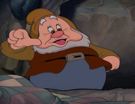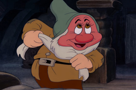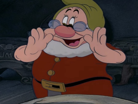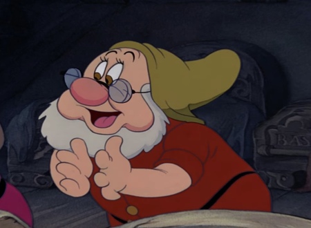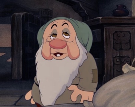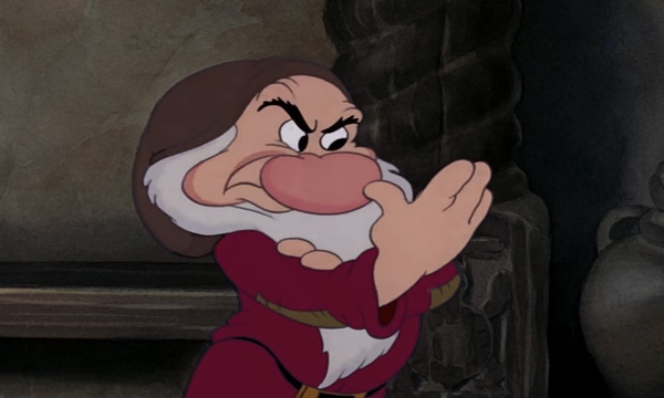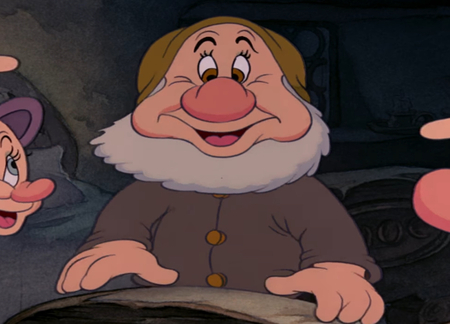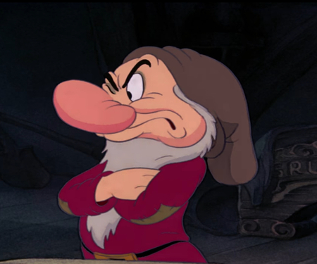 Ещё один из персонажей — Ворчун. Его имя свидетельствует о характере этого персонажа. Так и выходит, что весь анимационный фильм многими вещами Ворчун оказывается недоволен. Например, ему не нравится присутствие Белоснежки и то, как с ней обращаются остальные гномы. Внешность Ворчуна: этот персонаж носит очень длинную бороду, а также у него самый большой красный нос. Этот вечно недовольный гном носит длинную бордовую рубашку с заплатками на рукавах. Хоть этот герой и отличается сварливым характером, но по итогу оказывается самым запоминающимся из всех гномов. [Рис. 51-52]