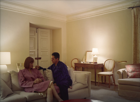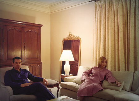 Фотограф помещает реальных людей в выдуманные истории, словно актеров в кино. Выставленный свет, выверенная композиция — всё это вызывает ощущение ирреальности происходящего.