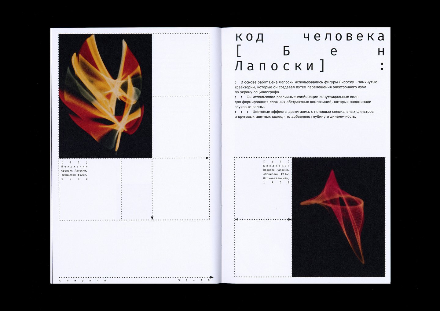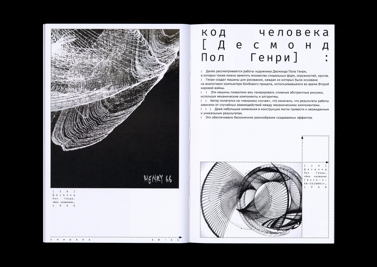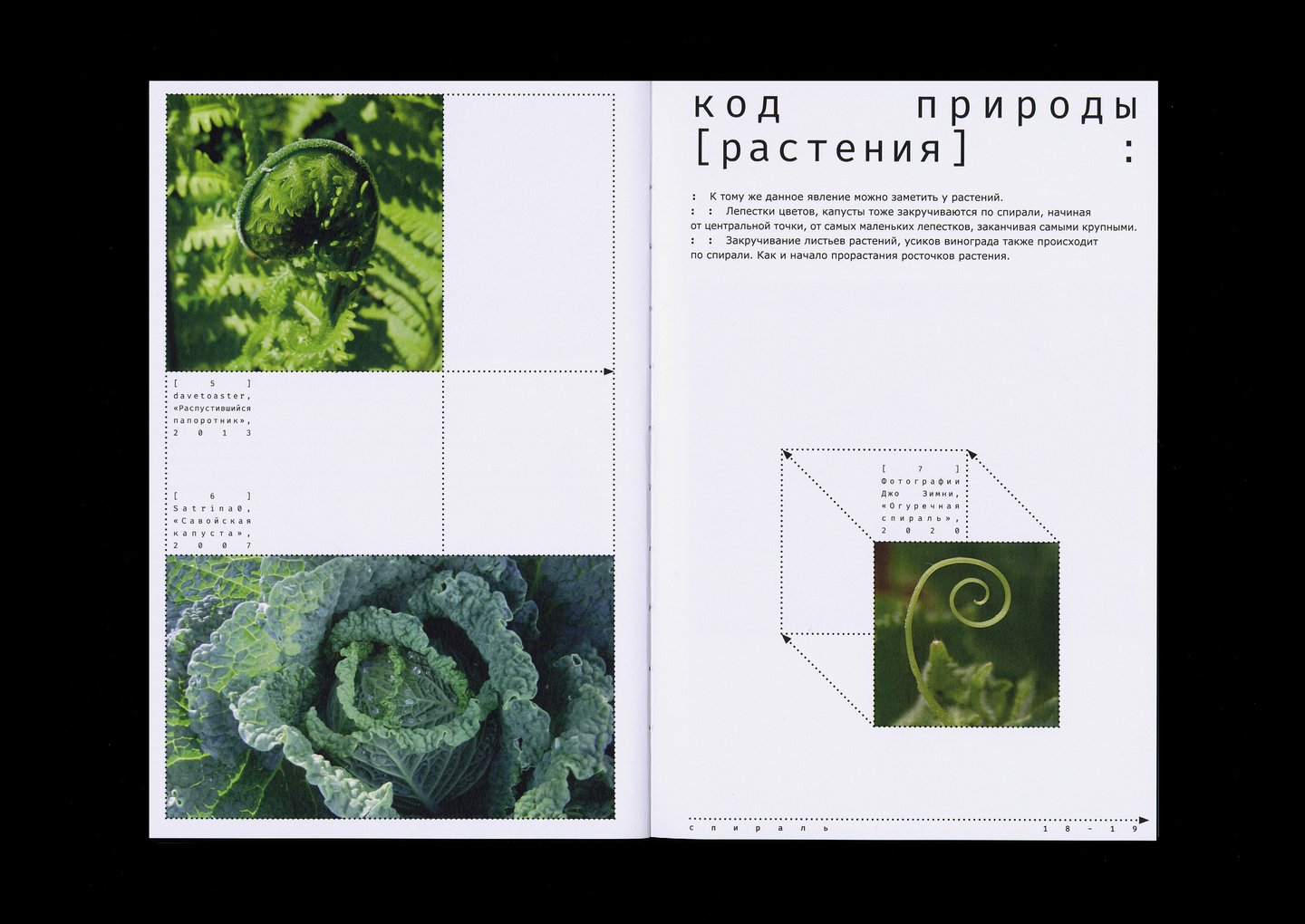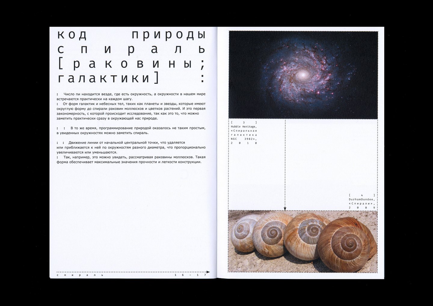 Визуальное исследование посвящено анализу закономерностей природы и работ человека, созданных при помощи кода программирования и компьютера. По итогам которого определяются составляющие кода природы и то, что система программирования, что создал человек является аналогом того, как всё создаётся в нашем мире.