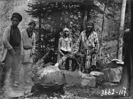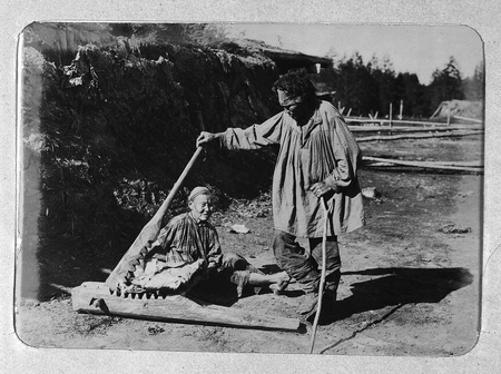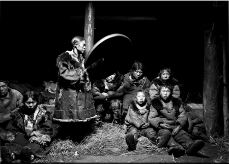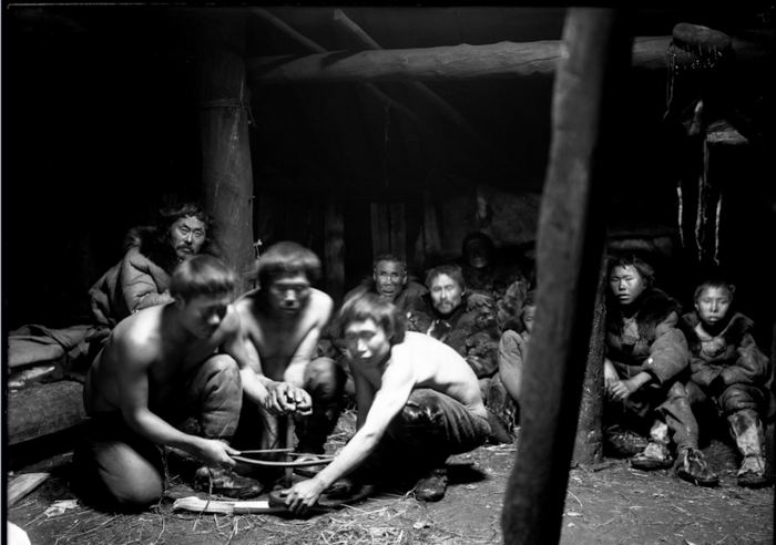 Рассмотрим самосознание сибирских народов через представленные ниже фотографии советского этнографа Дыренковой Надежды Петровны в 1927 году (горно-шорский национальный район) и фотографию неизвестного автора с экспедиции в камчатский край, именованную «добыча огня» (1909). Эти работы лишены художественных изысков, но через них зритель может почувствовать присутствие народов Сибири.