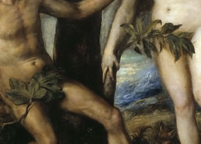 Бог запретил Адаму и Еве вкушать плоды с Древа познания добра и зла. Но змей-искуситель убедил Еву нарушить запрет, и она съела плод, а затем дала его Адаму. В результате этого непослушания они осознали свою наготу и устыдились.