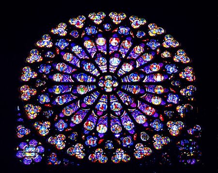 Южная роза собора Нотр-Дам де Пари была построена примерно в 1260 году по проекту Жана де Шелля и Пьера де Монтрея. Ее диаметр составляет около 12,9 м. Окно включает 84 стеклянные панели, расположенные в четырех концентрических кругах. Геометрия окна опирается на символику числа «4» и его кратных (12 и 24), что подчеркивает сакральную структуру композиции. Со строительной точки зрения, окно поддерживается каменным переплетом, который соединяет радиальные ребра и образует сетчатую структуру, способную выдерживать вес стекла. В ходе реставраций (1725–1727 и позже 19 веке) архитекторы укрепили конструкцию: была восстановлена часть средневекового стекла, а сама роза повернута на 15°, чтобы установить ее более устойчиво, обеспечивая вертикальную и горизонтальную оси для каменной «кружевной» решетки.