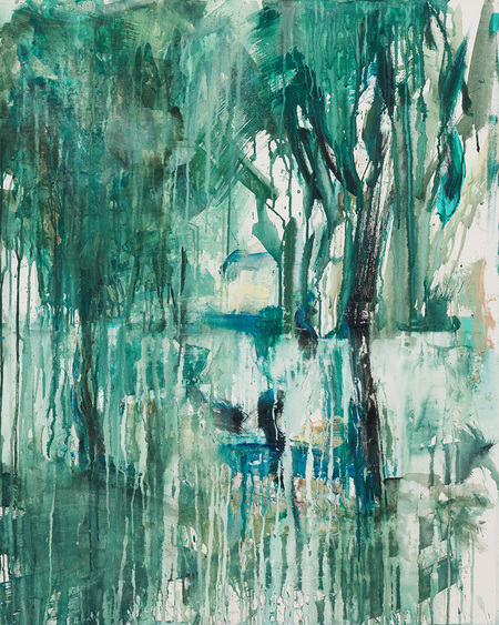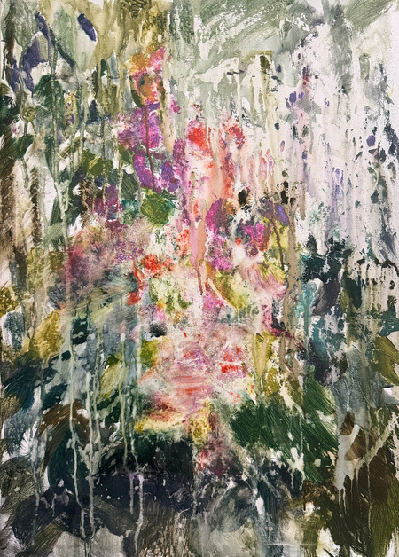Текучие сны, холст, акрил, 100×80 см, 2025 // Шёпот леса, холст, акрил, 100×80 см, 2025.