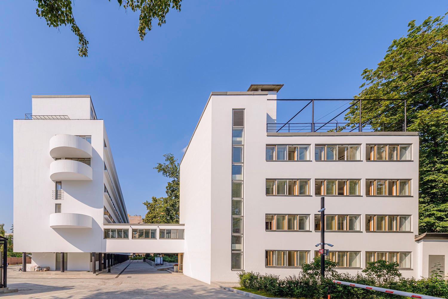 Основные принципы: -Функционализм: форма здания строго следует его функции, каждая деталь имеет практическое назначение, декоративные элементы отсутствуют. Архитекторы стремились создать здания, которые эффективно служили бы своим целям, без излишеств и украшений. Это выражало принцип «форма следует функции», где каждая деталь выполняла техническую, а не эстетическую задачу. -Геометричность: преобладают простые геометрические формы — кубы, цилиндры, параллелепипеды, сферы. Архитектура строится на упорядоченной и симметричной организации объемов, что придаёт зданиям современный и прочный вид. Большое внимание уделяется пропорциям и равновесию, чтобы создать гармоничную композицию. -Индустриальность: использование новых материалов — бетон, сталь, стекло, видимые конструкции, напоминающие промышленные или механические сооружения. Эти материалы обычно оставлялись в их естественной форме и цвете, что придавало зданиям промышленный и суровый облик, выражая принцип искренности и отказ от маскировки конструкции. -Минимализм: отсутствие декора, простота и лаконичность форм, акцент на чистоте и функциональности. Архитекторы отказывались от украшений и орнаментов в пользу чистоты и простоты формы. -Эксперименты с пространством: открытые и светлые помещения, атриумы, легкие конструкции, динамичные объемы. Перекрытия и образование пустот в зданиях позволяли создать открытые и светлые помещения, что способствовало повышению комфорта и удовлетворенности пользователей. -Использование инновационных технологий: модульные системы, стандартизация, префабрикация компонентов для экономии времени и средств. Конструкционные элементы видны наружу, что придает зданию ощущение легкости и открытости.