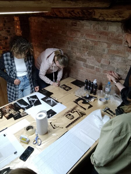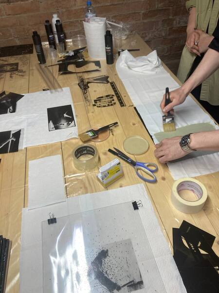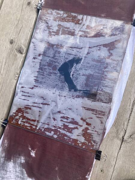 Цианотипия на ткани Ход работы: 1. Перед началом работы, устраните все источники ультрафиолетового излучения — свет из окна и некоторые лампы дневного света могут испортить растворы. Для работы лучше всего подойдет неяркий свет от ламп накаливания.
