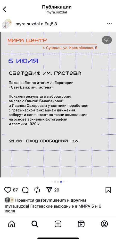 Выставка-показ работ по итогам лаборатории «СветДвиж им. Гастева» 5 июля 2025 21:00 Суздаль МИРА ЦЕНТР