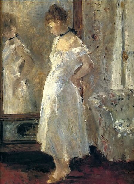 Берта Моризо. «Психея» 1876 г. // Пьер-Огюст Ренуар. «Туалет: женщина, расчесывающая волосы» 1890 г.