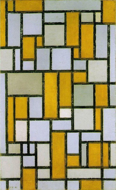 Пит Мондриан. Композиция с сеткой № 1, 1918 / Казимир Северинович Малевич. Супрематизм, 1915.