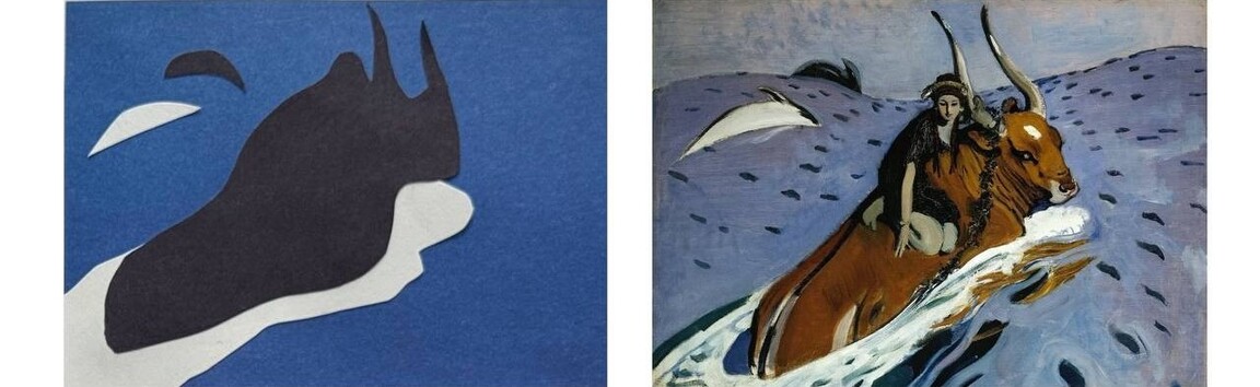 Описание: Студент самостоятельно выбирает несколько произведений художников разных течений и эпох. Анализируя изображение, он создает композиционный конспект и при этом использует только 2-3 цвета. Техника: аппликация.
