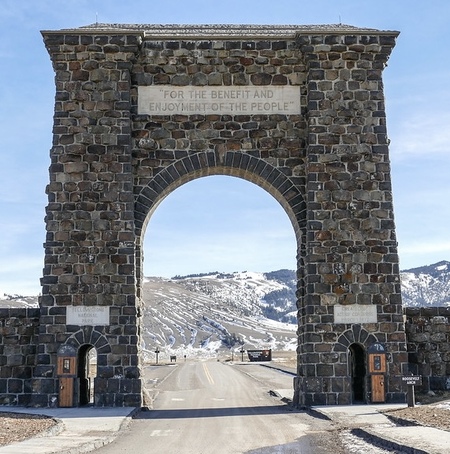 За океаном возникает принципиально иное прочтение мотива. Арка Рузвельта (1903) у входа в Йеллоустонский парк использует римскую схему в утилитарных целях. Её рустикальная кладка и скромные пропорции символизируют не военный триумф, а торжество цивилизации над дикой природой.