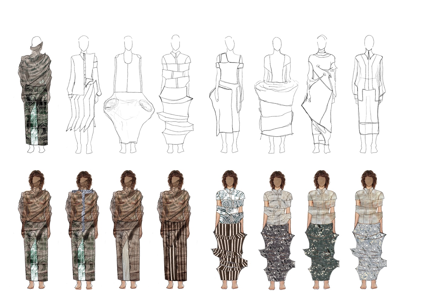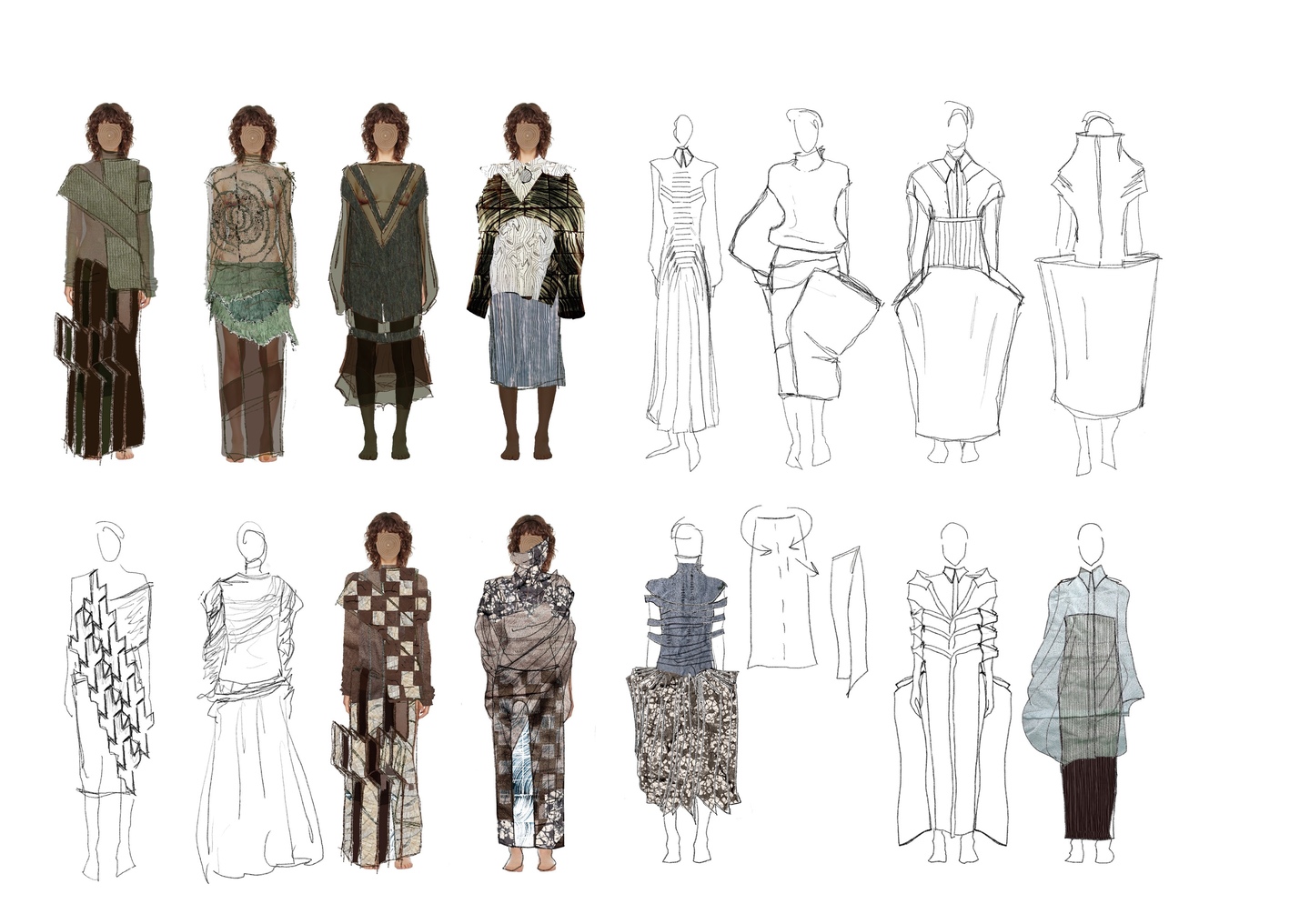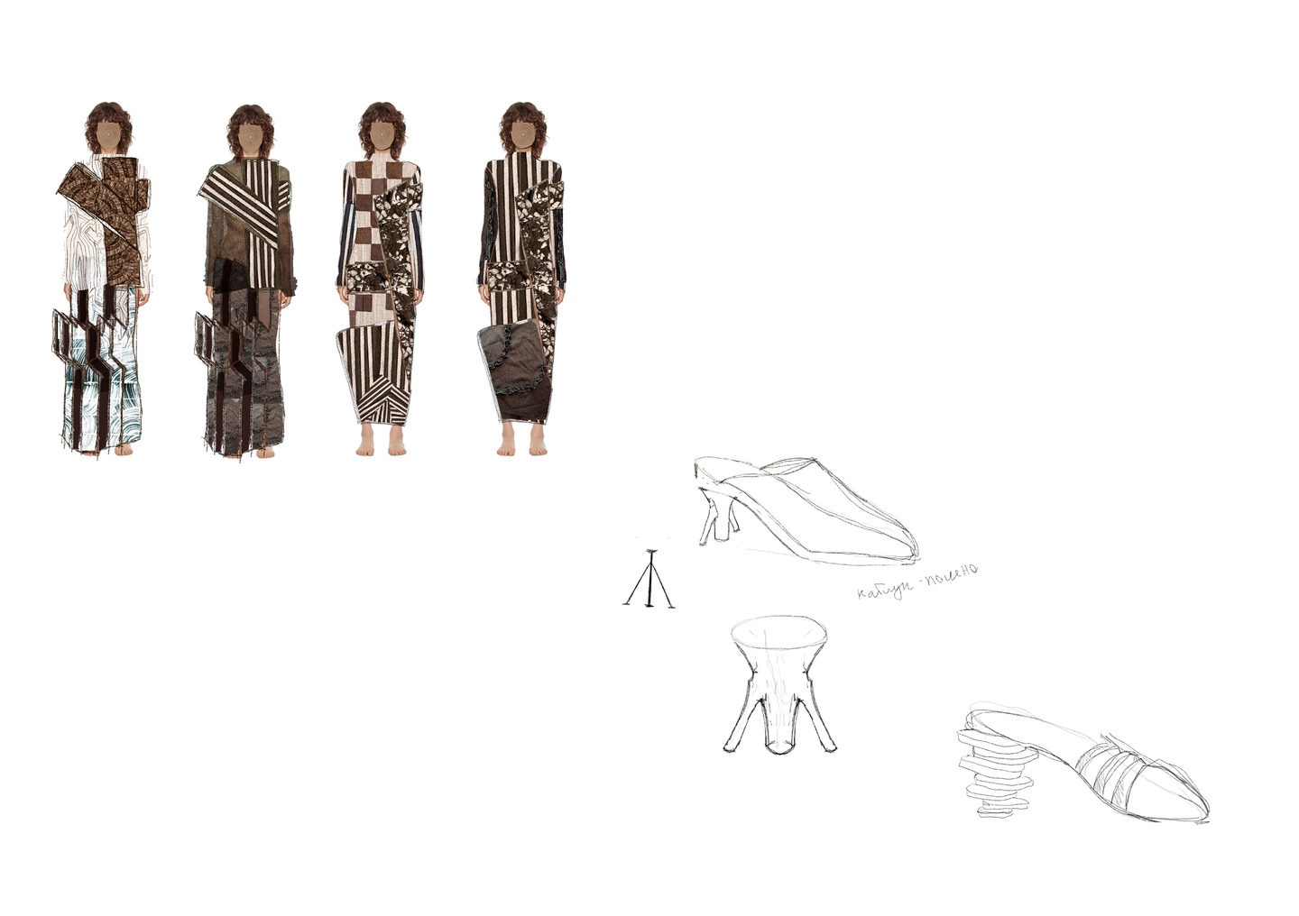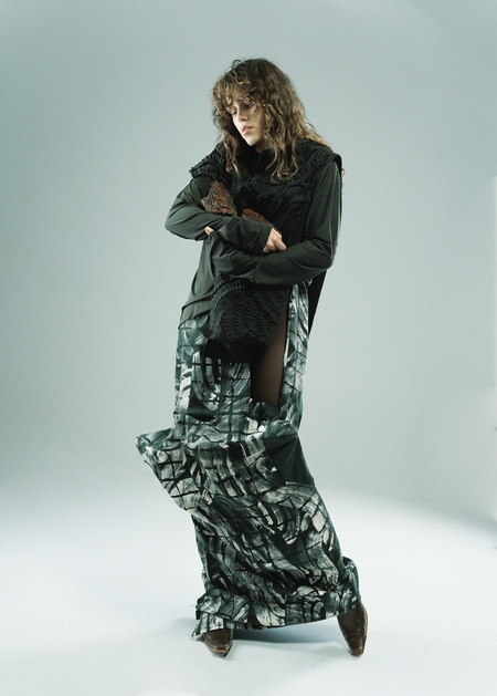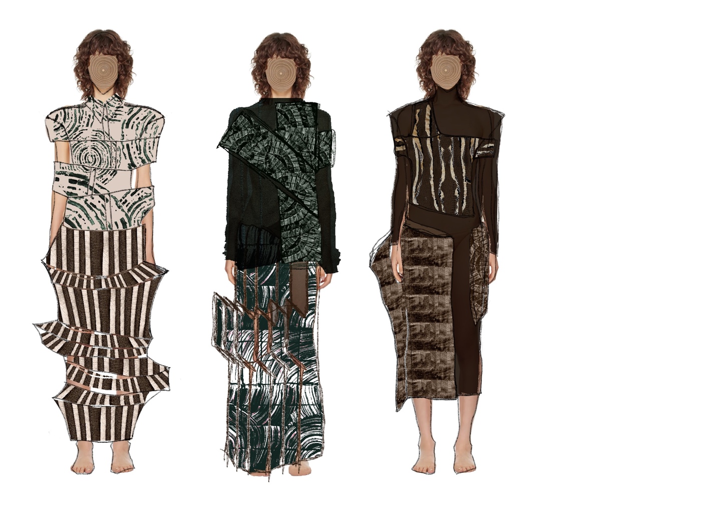 Исследование образа и стиля дамы с поленом привело к теме обращения к прошлому как способу сохранить рассудок, защититься от абсурдности мира. Отчужденность и одновременно с этим глубокая связь с окружающим выражаются через метафору, кору дерева, которая и защищает, отгораживает, и становится проводником знания. Оно позволяет видеть и чувствовать больше, чем обычный человек, но при этом делает ее эксцентричной и отрешенной от общества. За основу коллекции взяты деконструкция образа и стиля дамы с поленом и древесные мотивы