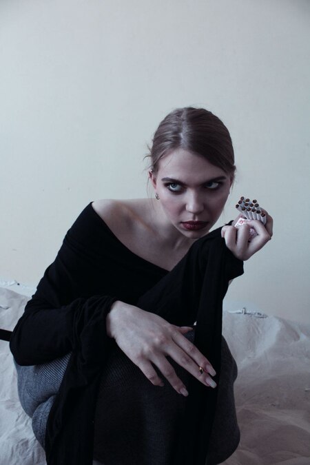 Телефон — это загадочный и будто пепельный персонаж, на трубке которого истлела уже сигарета, и нет ни одной целой. Его внешний вид словно отражает ощущение завершённости и отсутствия желания к общению.