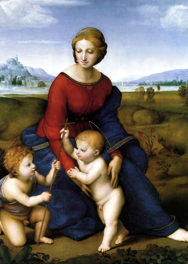 Рафаэль Санти — «Мадонна на лугу» (Madonna del Prato / Madonna of the Meadow) (1506). Kunsthistorisches Museum, Вена.