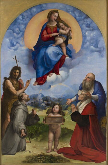 В «Сикстинской мадонне» и «Мадонне Фолиньо» дистанция окончательно закрепляется: Мария входит в пространство как небесное видение, вокруг нее выстраивается многофигурная алтарная сцена.