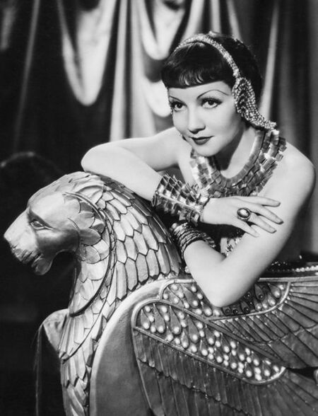 В фильме «Клеопатра» 1934 года рассказ ведется от лица современного автора. Клеопатра представлена как сильная и уверенная в себе женщина, однако её главной чертой является сексуальность. В фильме она облачена в откровенные наряды, которые мало соответствуют исторической действительности, за исключением некоторых элементов, таких как головные уборы и украшения: корона богини Исиды, диадемы, обручи, браслеты.