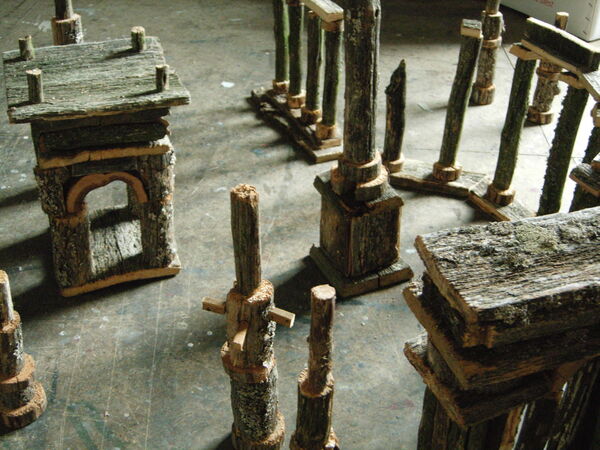 Бетонные скульптуры напоминают временные здания или хорошо сохранившиеся руины — монолитные сооружения посреди бесконечного пейзажа в невозмутимом ожидании, эфемерные архаичные пространства, будто обнаруженные археологами будущего. Обманчиво знакомые образы, словно взяты из сновидений и городских мифов, ложных воспоминаний, озаряющих видений.