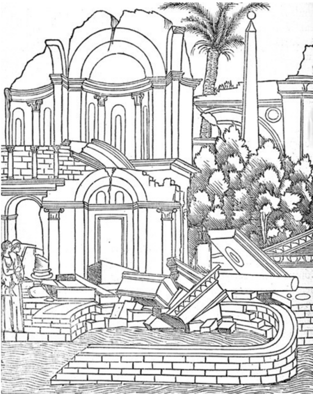Ренессансные изображения античных руин наследуют средневековую трактовку, где они символизируют бренность языческого, дохристианского мира. Так в них проявляется не столько тоска по ушедшему, но скорее торжественная справедливость времени, в котором языческая материя уступает место христианской истине.