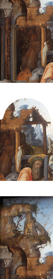 Современная художникам руина в живописи Возрождения чаще всего служит обозначением хлева, в котором родился Христос. Однако в североевропейской традиции к этому мотиву добавляется и изображение актуальной разрушенной, но обитаемой архитектуры — домов и построек, находящихся в состоянии распада и всё ещё включённых в повседневную среду.
