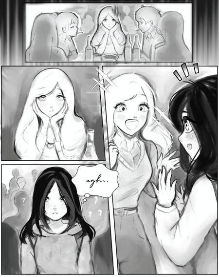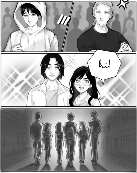 В этой работе я исследовала переход от тревожности к чувству принятия. Чёрно-белая палитра не только отсылает к манге, но и редуцирует цвет, отсылает к мотиву воспоминаний, оставляя пространство для акцентов в эмоциональной драматургии. Крупные планы, верстка, сцены с графемикой — всё было направлено на то, чтобы зритель не просто читал историю, а чувствовал её.
