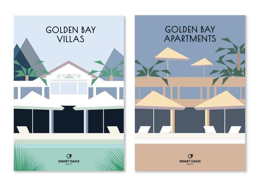 Плакаты и книга для агентства курортной недвижимости Smart Oasis Realty