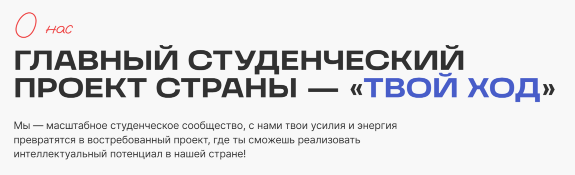 «Твой ход» — это всероссийский студенческий проект, который помогает студентам реализовывать свой потенциал, развивать навыки и создавать собственные проекты