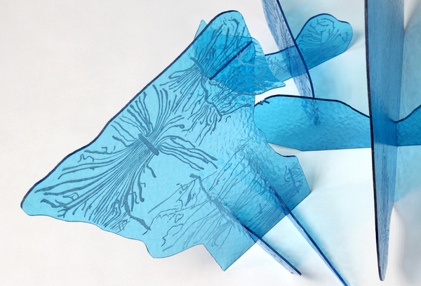 Вид сверху Стекло цветное, ручная гравировка, УФ-склейка, 2021