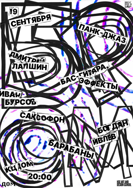 In the poster, I reflected my impression on the BROM music group. Like any jazz composition, their music produces a «hypnotic» impression, which I expressed with the help of a severed printing and graphics.