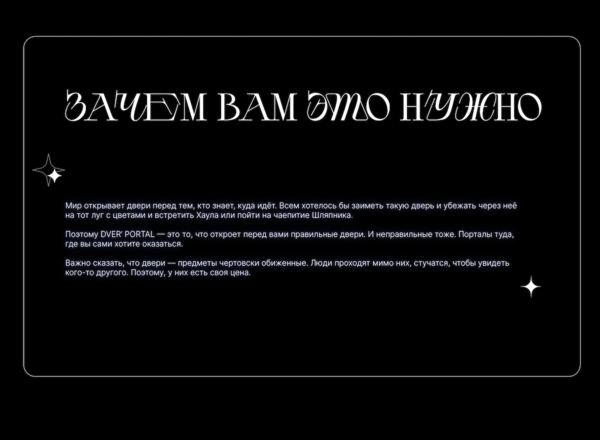 Также в рамках концептуального мероприятия был придуман формат флаера, который служил как эстетически-развлекательной деталью программы, так и играл роль начального элемента навигации для гостей.