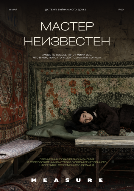 Фэшн-фильм «Мастер неизвестен» был создан в мае 2025 года. 3 июля состоялась официальная премьера на сайте The Blueprint, так как проект выиграл в конкурсе Blue Screen. Ссылка на статью размещена в следующем блоке.