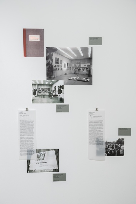 Вокруг деревянных «монументов» — документы, фотографии, воспоминания. Выходя за пределы точной хронологии, архивные материалы сплетаются в живой нарратив. Нерасшифрованные пометки на полях, истории о Венецианской биеннале, студенческие просмотры — все это не музейные экспонаты, а частицы процесса, который продолжается и сегодня.