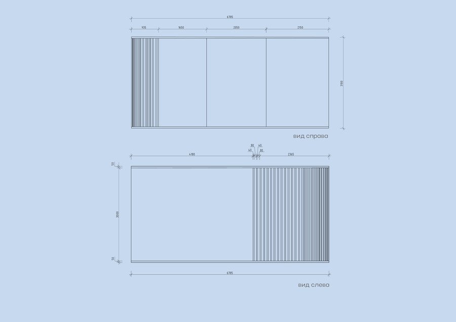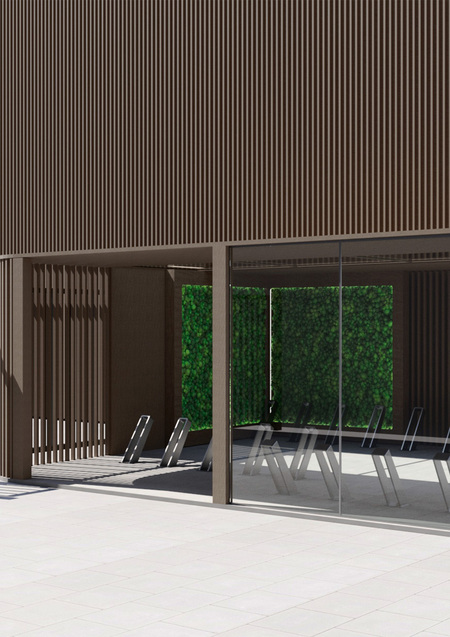 Проанализировав техническое задание от заказчика, мы приняли решение соединить стилистику фока в виде покрытия под дерево и использовании реек, а также добавить стеклянные вставки в решении стен и потолка в качестве отсылки к фасадным решениям ЖК.