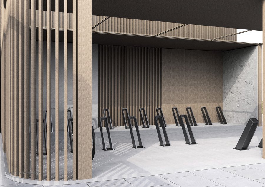 Вело парковки для хранения велосипедов. Дизайн отделки и крепления могут быть предложены проектировщикам.