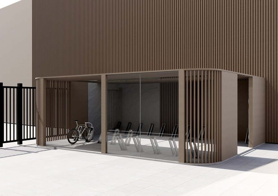 Разработать Дизайн проект уличного павильона велопарковки для объекта Премиум класса ЖК Мангазея на Речном.