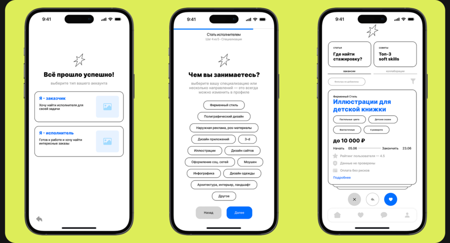 Projectly is a platform for searching for designers and customers. Using performance service mechanics, the app connects talent to projects.