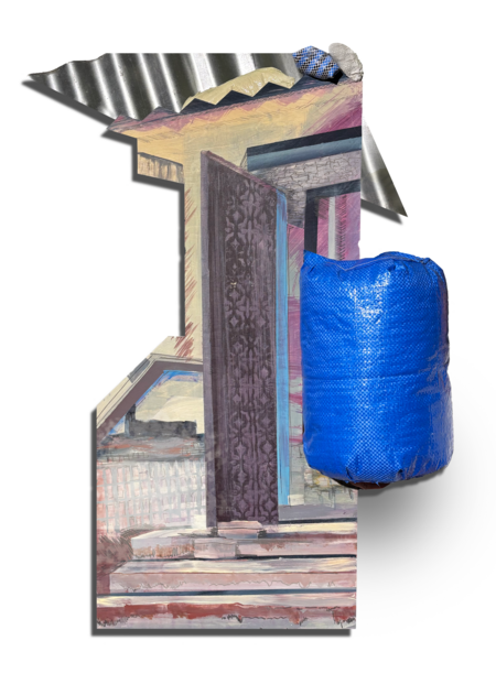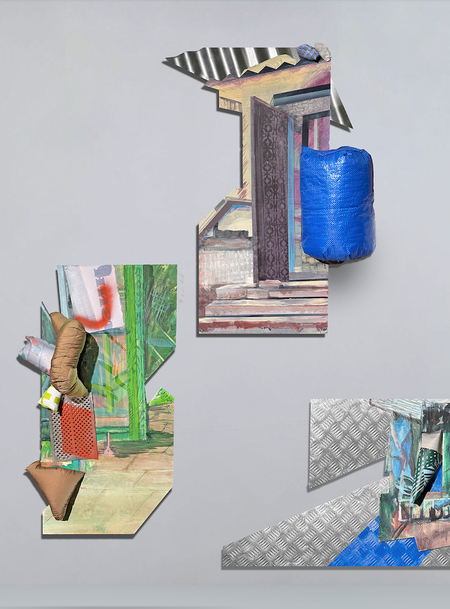 Each work in the series shows one of these entropy spaces. The compositions are collected from materials extracted from transit areas, such as profiled floors, metal planes, and textiles, introduced as integrated tangible forms that help to shape the recognition mechanism. The work is an attempt to show the topology of the material forms that have been removed from the visual language of urban everydayity.