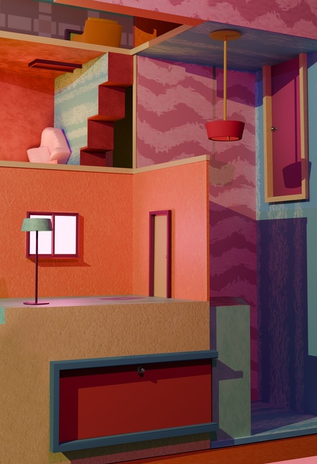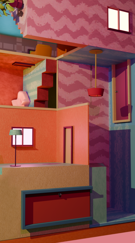 В подкасте рассказывается, что «Спираль» — олицетворение страха обезуметь, потерять контроль над собственным разумом, поэтому в процессе текстурирования и расстановки света, я хотела прийти к неестественным, ярким цветам и «вырвиглазному» освещению в некоторых моментах