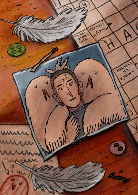 Потерпевший крушение где-то в глуши летчик обжился с большими птицами и делит с ними быт. Он тут давно: пылится собранный в надежде чемодан, отложена летная шапка. Кажется, он уже забыл, кем когда-то был: с птичками хорошо и беззаботно.