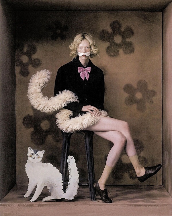 Тим Уокер в своих фотографиях превращает моделей в героев сюрреалистических сказок, где красота соседствует с гротеском. Его куклы–это часто «ожившие» объекты, чья искусственность подчеркнута и доведена до абсурда. Образы героинь балансируют на грани детской невинности и тревожной странности. Его модели с застывшими улыбками и стеклянным взглядом кажутся заколдованными, пойманными в ловушку собственной идеальности, что рождает чувство беспокойства, а не восхищения.