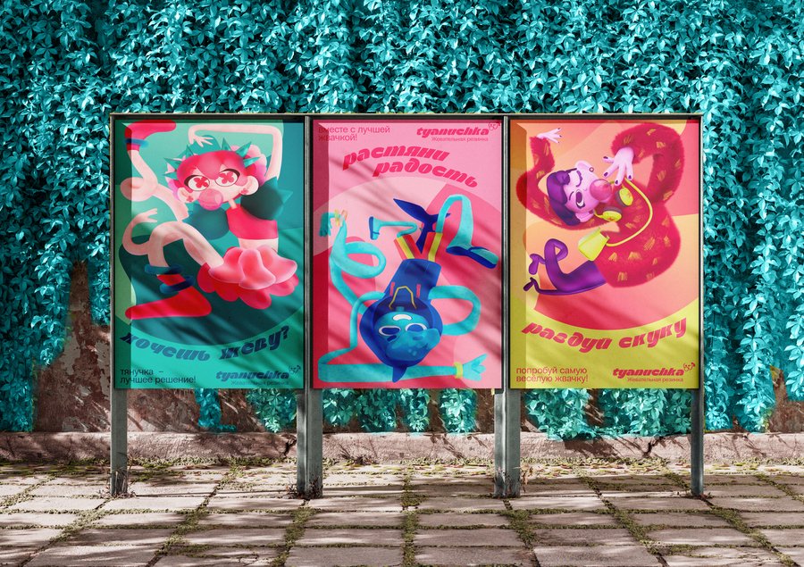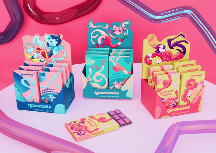 «tyanuchka» — бренд жвачки, направленный на привлечение внимания детей в возрасте от 6 до 14 лет. Ценности бренда заключаются в яркости, энергичности и веселье