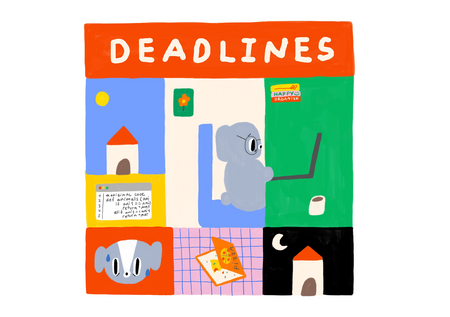 Пак «deadlines sticker pack‎»‎ напечатан на прозрачной пленке, но сами стикеры имеют белую подложку для того, чтобы они не просвечивали. Они устойчивы к влажности, из-за своего небольшого размера лучше всего смотрятся в дневниках. Ключевой сюжет — дедлайны. Иронично передают ощущение страха не успеть сделать все дела вовремя.