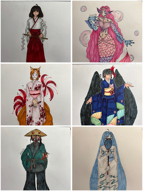 В интерактивной новелле ёкай тенгу изображается как загадочное и могущественное существо с черными крыльями, одетое в традиционный японский кимоно с ярким узором вееров и цветков сакуры. Её образ дополняют высокая прическа, яркая маска с птичьим клювом в волосах, а также традиционная обувь гета. Тенгу обладает сверхъестественными силами, связанными с ветром и духовным миром, часто выступает мудрым наставником или опасным противником, в зависимости от выборов главного героя.