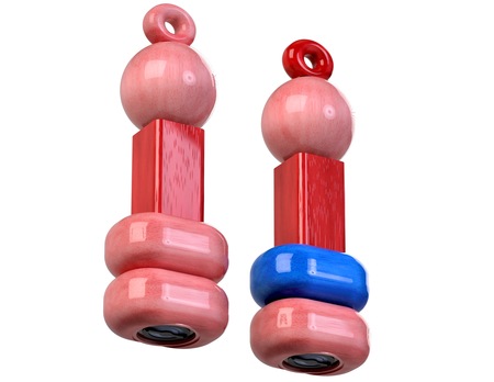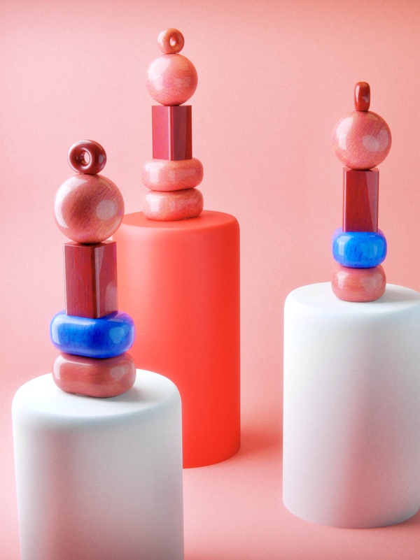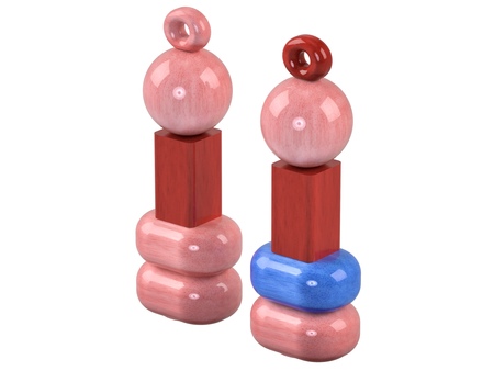 Пара из двух механических мельниц для соли и перца — отсылка к пирамидке родом из детства. Когда объёмные фигуры надевались на палку и зачастую создавали неуклюжие формы.