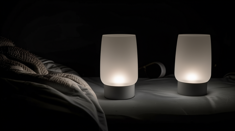 Функциональные светильники с датчиками, подстраивающими теплоту света под время суток. Для генерации были использованы картинки-референсы (Krea) и промт (Qwen, ChatGPT).