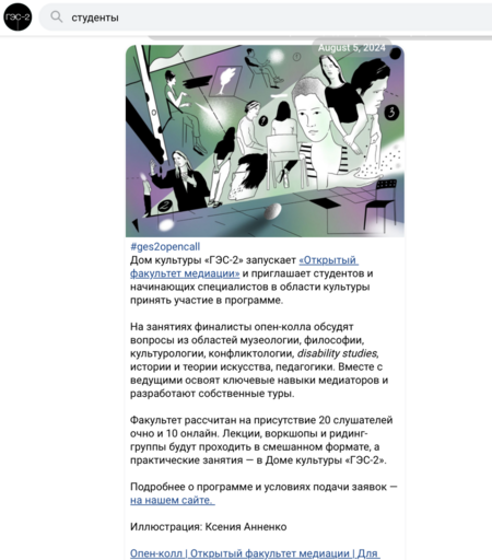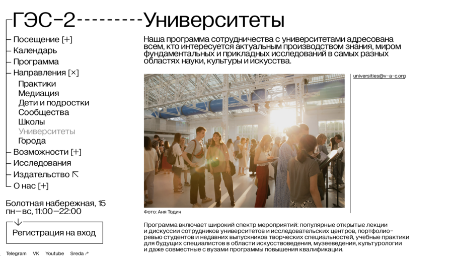 —> Привлечение студенческой аудитории на профильные мероприятия и в здание «ГЭС-2» на регулярной основе