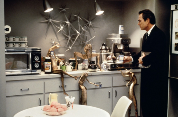 Люди в чёрном 1: Когда я впервые встретился с Барри Зонненфельдом и поговорил с ним о Людях в чёрном, — сказал специалист спецэффектов Рик Бейкер, — я сказал, что будет очень сложно создать инопланетянина, который не будет похож на то, что вы видели по телевизору 40 000 раз. Это была одна из задач — сделать что-то, что не будет похоже на то, что делали раньше. Не знаю, удалось ли нам это, но некоторые из них выглядят оригинально.