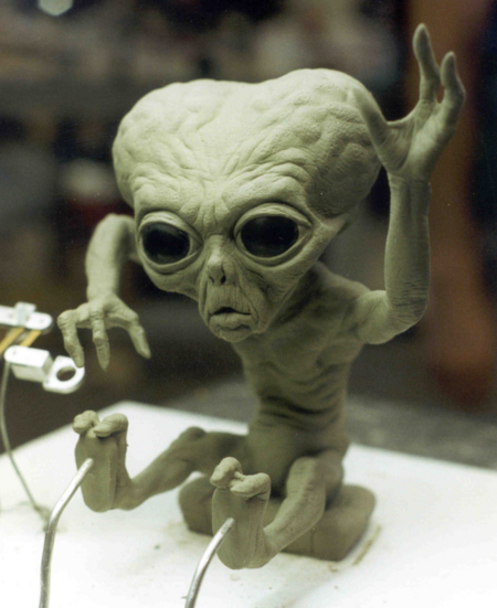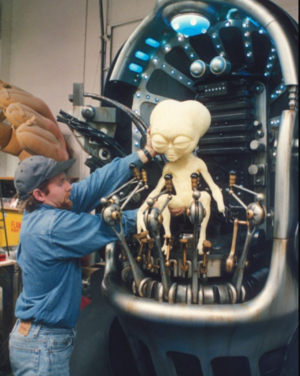 Cinovation под руководством Хосе Фернандеса и Аарона Симса построила две версии: аниматронную в натуральную величину и увеличенную (4:1) для крупного плана. Модель позволяла добиться нужной детализации как текстуры, так и физической анимации существа, поскольку механизмы синхронизации губ и другие сложные функции нельзя было установить в уменьшенную версию в натуральную величину. В проекте участвовала ILM, создавшая кокпит.