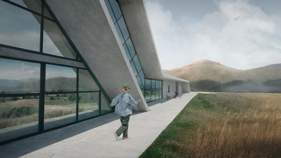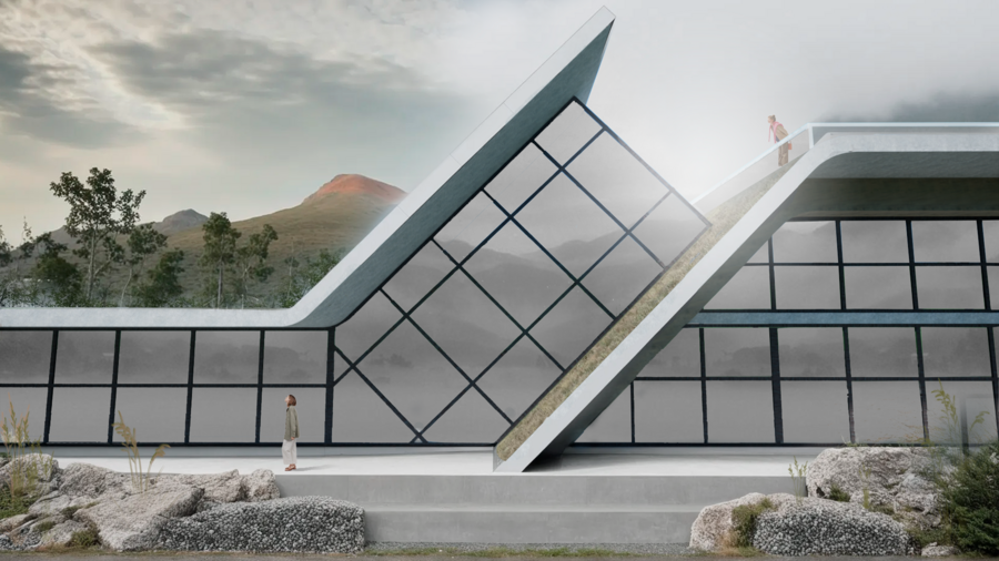 Концепция заключается в переосмыслении темы того, что должно было появится, но так и не произошло. Формообразование напоминает сдвиг тектонических плит, а интерьер отеля напоминает гору изнутри.