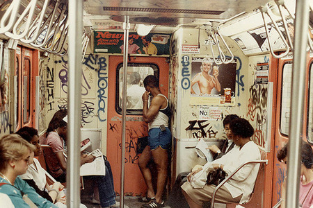 Распространение граффити в Нью-Йорке стало возможным благодаря метрополитену, который неожиданно превратился в средство коммуникации между райтерами. Разрисованные составы курсировали по всей городской сети, перенося подписи с одного района в другой. Надписей становилось настолько много, что поезда фактически работали как передвижная галерея, а их поверхность — как общий альбом, в котором «писатели» узнавали друг друга. Слабая охрана депо и нерегулярная очистка вагонов позволяли работам существовать месяцами, поэтому каждый новый тег получал гораздо большую аудиторию, чем надпись на стене конкретного дома.