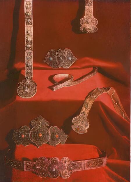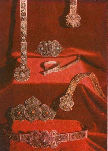 В Карине у женщин были серебряные или золотые пояса с геометрические или растительные орнаментами на пряжке.