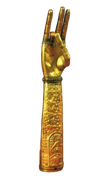 Позолоченный серебрянный сосуд, Эчмиадзин, 9 век // Десница Григория Просветителя